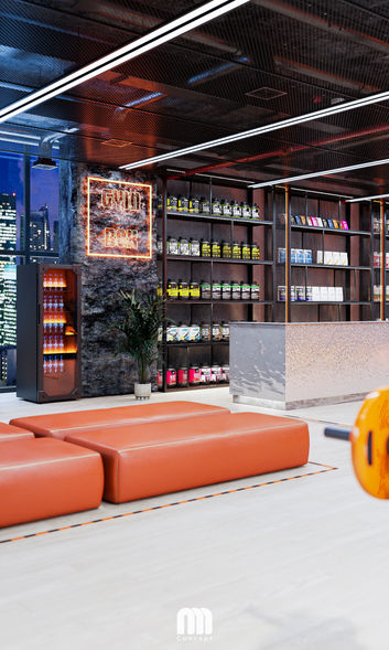 Mạnh mẽ, Hiện đại, Cơ bắp - chính là những tiêu chí của phòng Gym. Vẻ ngoài trông rất mạnh mẽ nhưng được kết hợp với màu đen đỏ, mang đến sự hài hòa, không quá phô trương